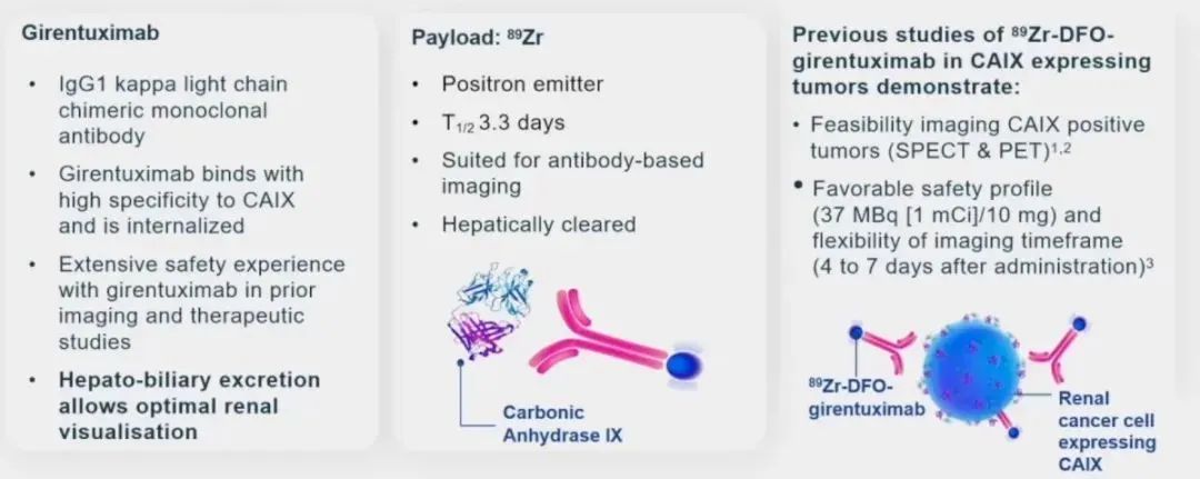 DPI-4452是一種與CAIX高親和力結合的環肽,是由3B Pharmaceuticals GmbH開發,后獨家授權給Debiopharm(Debio 0228/0328)。2024年2月,Michael S. Hofman教授展示了[68Ga]Ga-DPI-4452在ccRCC患者上的出色的成像,并加速推進[177Lu]Lu-DPI-4452治療的后續評估,打算通過"診斷探針+治療核藥"組合拳形成診療閉環,構建CAIX靶點核藥診療一體化“護城河”。